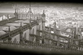 We also didn't encounter many tourists here, and we certainly didn't hear any American accents. We felt like we had many of the main attractions to ourselves, especially the Alcazar, which was almost empty. The Catedral (the largest gothic cathedral in the world and third or fourth largest overall) had services going on while we were there, which was neat because music filled the huge space. And the views from the Giralda were worth the climb, even with the poor weather.