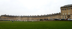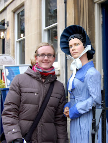 Royal Crescent (above right), we listened to a scene from Persuasion, where two of the main characters engage in a touching conversation on that very Walk. Because we had headphones on--meaning we weren't pausing to read from a book or following a huge crowd, straining to hear the guide--we could walk at our own pace, enjoying the scenery and the commentary without distraction. And being able to pause/rewind with the touch of a button is great.